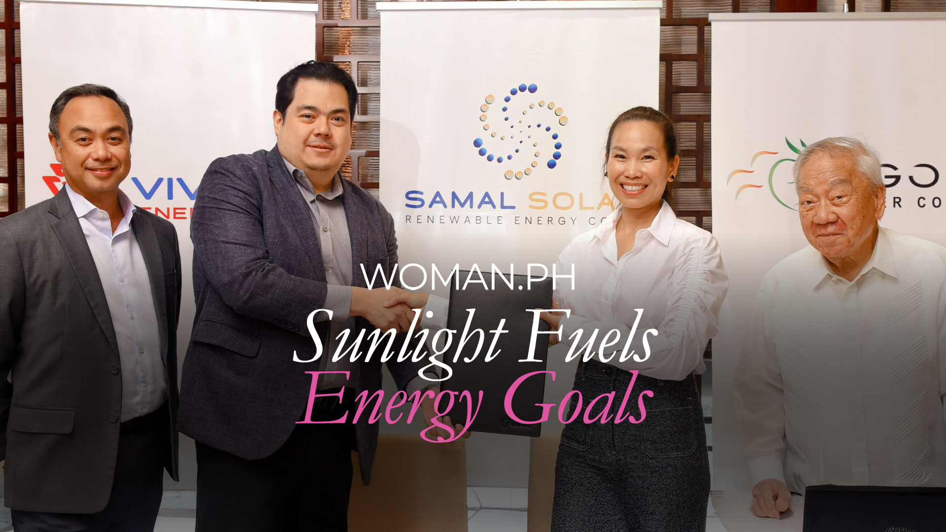 Vivant Energy President & COO Emil Andre Garcia and Tigon Power President & CEO Mayleen Ting share a handshake to mark their long-term partnership for the Bataan Solar Project, witnessed by Vivant Corporation CEO Arlo Sarmiento (left most) and Tigon Power Chairman Elon Ting (right most)